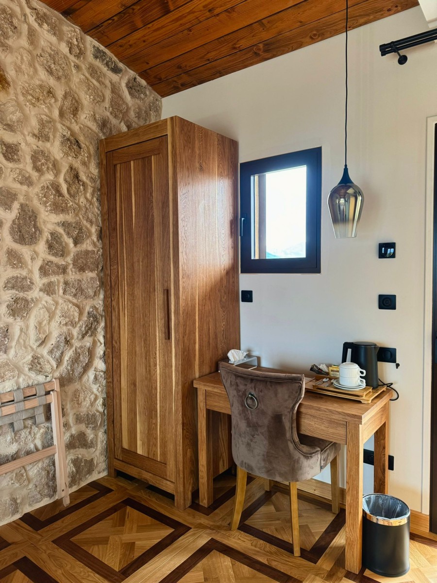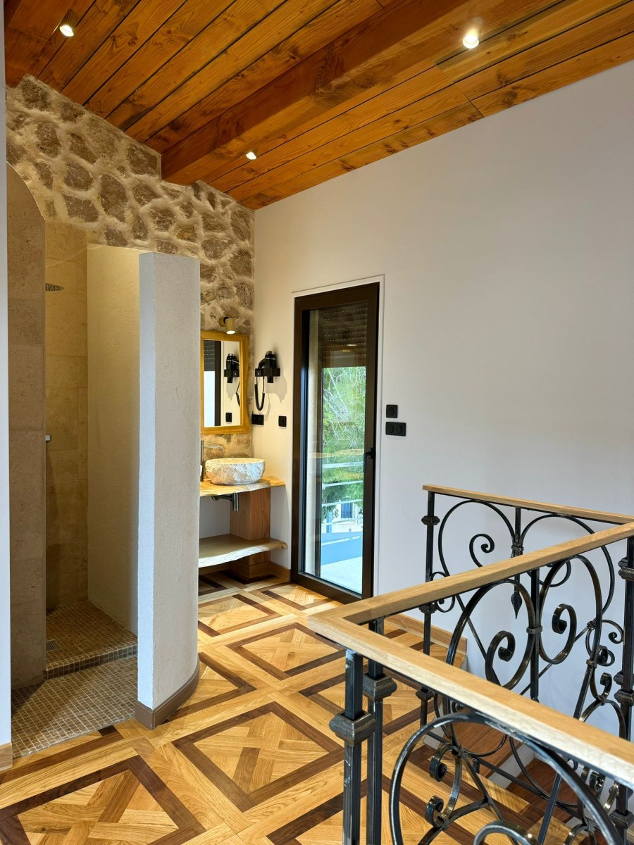 En catégorie Deluxe d’environ 40 m², notre Suite Deluxe style bergerie avec douche n’est pas ordinaire. Elle transmet une atmosphère de tradition. Elle est équipée d’un lit King Size, d’une climatisation réversible, d’un coffre-fort, d’un sèche cheveux, d’un minibar, d’une bouilloire, de toilettes japonaises, de trois vasques en pierre, d’une télévision avec écran plat avec des services de streaming, de trois balcon privatif offrant une vue imprenable sur la mer.